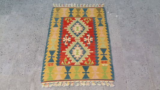 Small Turkish Kilim Rug Doormat Bathmat