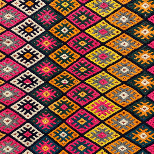 Hand Embroidered Intricate Design Turkish Kilim Rug