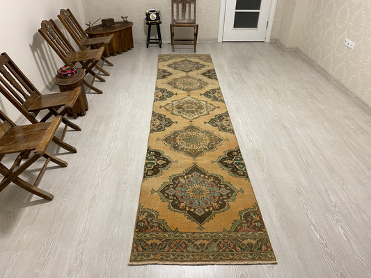 Long Vintage Turkish Oushak Hallway Runner Rug