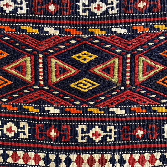 キリムアートギャラリーでは、職人技、歴史的価値、そして装飾性を重視し、本物のサドルバッグを厳選しています。一つ一つ丁寧に検査し、必要に応じて専門業者によるクリーニングを施し、世界に一つだけの織物工芸品として世界中へお届けしています。